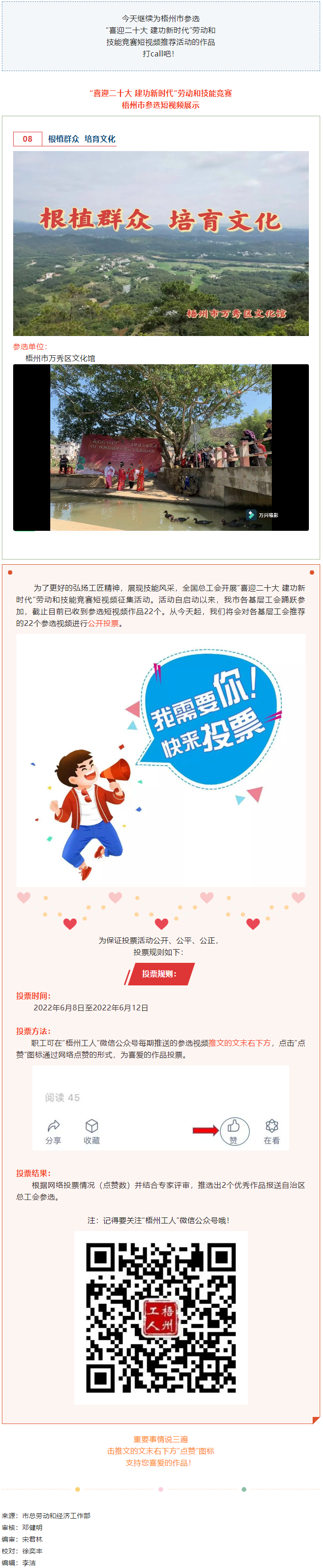 梧州市萬(wàn)秀區(qū)文化館參選作品丨“喜迎二十大 建功新時(shí)代” 勞動(dòng)和技能競(jìng)賽短視頻投票活動(dòng)開始啦!